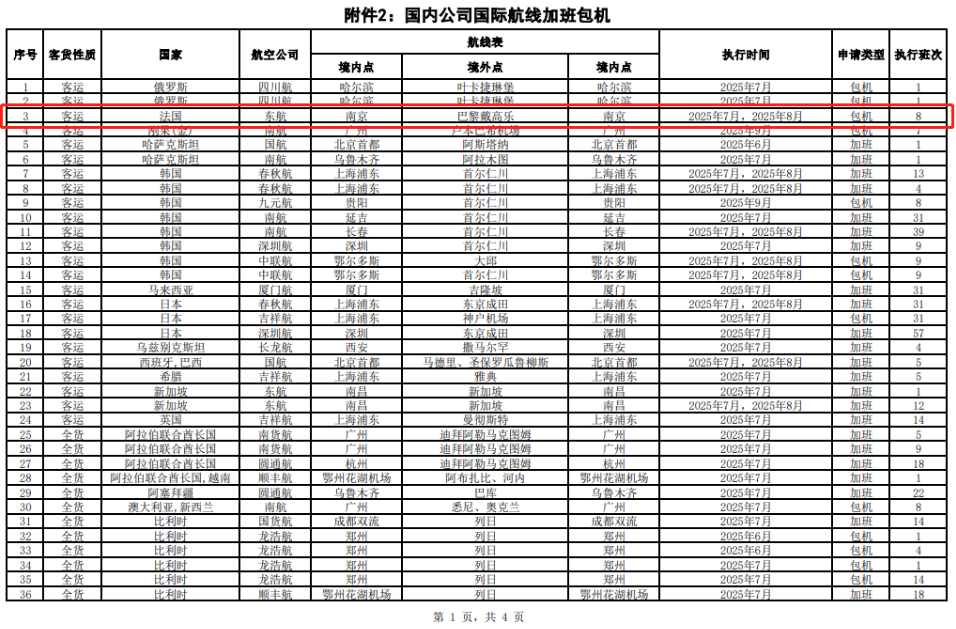 图源:中国民航局国际航线审批结果公开(C2025006)