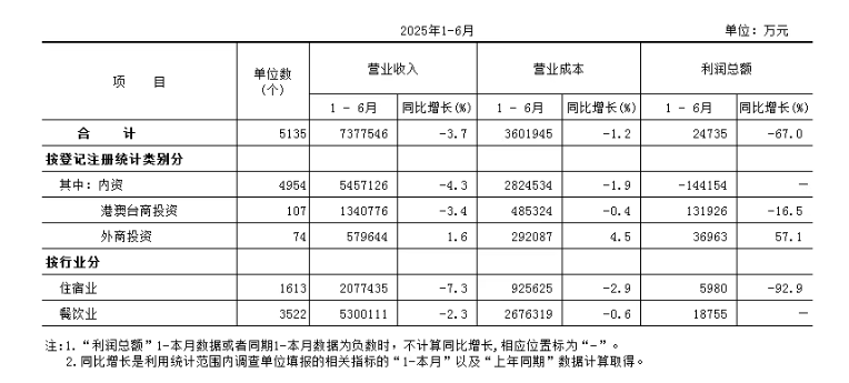 不妨看一组官方数据,北京市统计局数据显示,今年上半年,全市限额以上住宿业1613家,营业收入同比下降7.3%,利润总额5980万元,同比下滑92.9%。