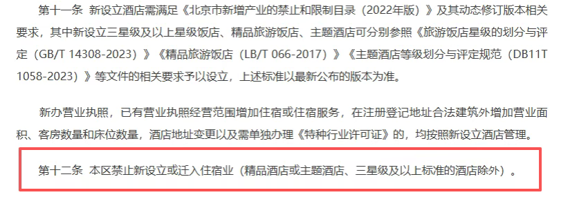 “其实这条规定,早在《北京市新增产业的禁止和限制目录(2022年版)》发布的时候就有了,只是这次针对酒店行业做了整体细化。”北京酒店业者Q总向笔者透露。