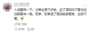 还有网友评论:“人话翻译一下:淡季生意不好做,定了酒店的不管住没住都要来一笔。旺季,旺季退了酒店能卖更贵,这我不管。”