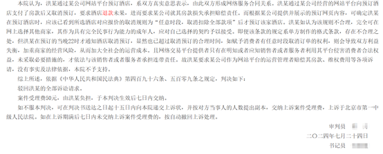 比如在洪某的酒店退订纠纷中,在法院判决书中有这样几段话,尤其是最后一段,值得细品: