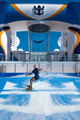 宾客可以在“甲板冲浪”(FlowRider)挑战自我,尽情享受乘风破浪的无限乐趣