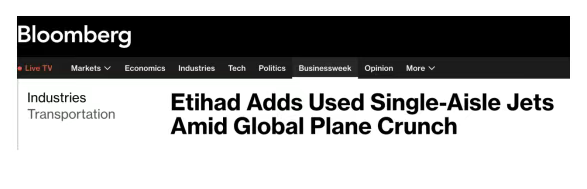 总部位于阿联酋首都阿布扎比的阿提哈德航空(Etihad Airways)正在通过购入二手单通道客机的方式,应对全球飞机短缺与持续的供应链挑战。