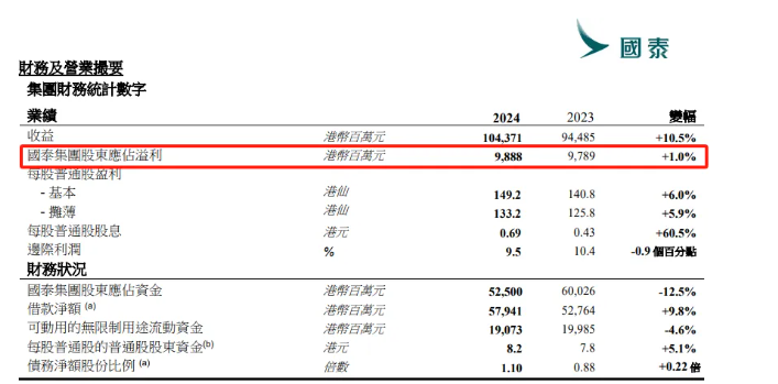 图源:国泰航空2024年全年业绩公告