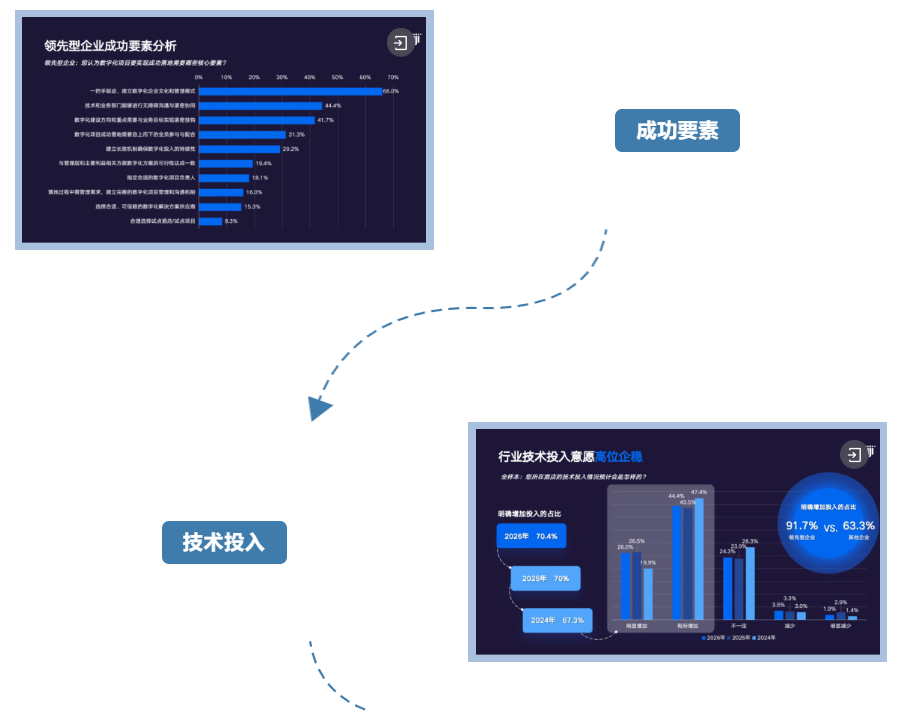 所以,行业依然面临到技术价值释放的问题,但是我们也确实看到领先型企业已经开始深入场景去梳理AI可以落地的场景,并应用这些技术跟业务协同从而支撑业务目标的实现,甚至有一些领先型企业将2026年新增的技术投入主要用于AI在企业内部的落地场景中。