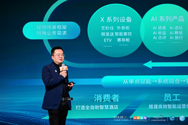谈及行业数智化的未来图景,艺科COO李予恺表示:“值得期待及具有无限可能”。艺龙酒店科技为此制定”做点,做面、做小、做大“的战略布局 。做点:即将智能化软硬件深入应到酒店经营场景,提升服务效率;做面:即为管理公司各层面工作人员提供软硬件支持,助力管理及数据决策;做小:即探究智慧酒店,将小而美的无人服务解决方案赋能品牌实现人力降本。做大: 即针对大型全服务酒店开发管理系统,实现各项效能全面提升。艺龙酒店科技通过四维能力矩阵 ,从解决具体场景的AI工具赋能,向构建行业智能决策大模型演进,致力成为酒店的外挂大脑。
