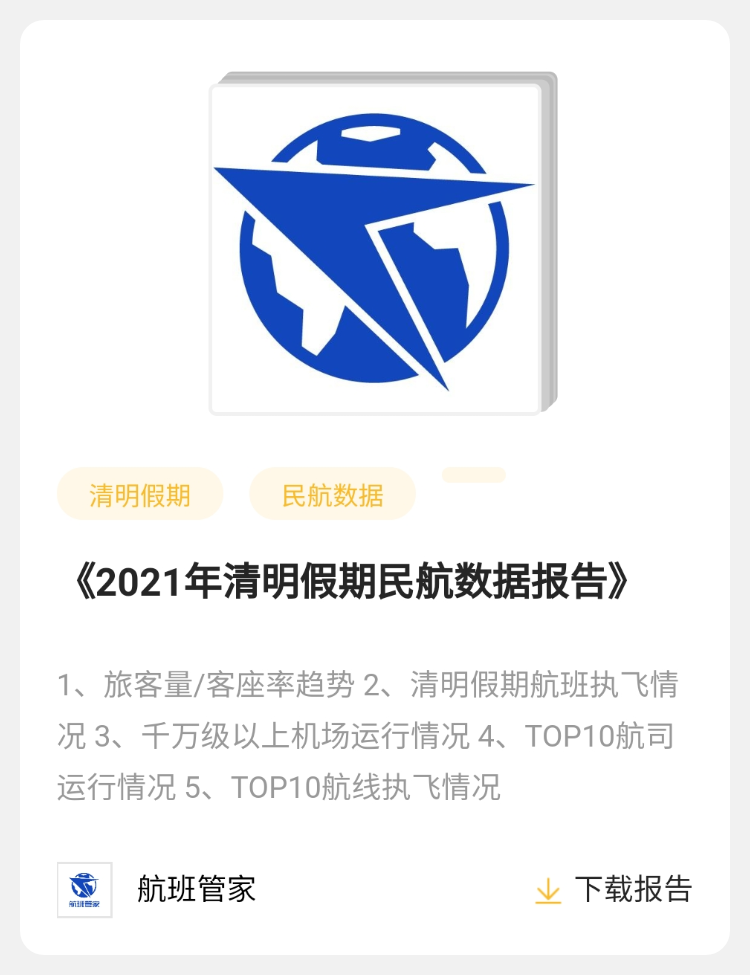 【报告】航班管家 | 《2021年清明假期民航数据报告》