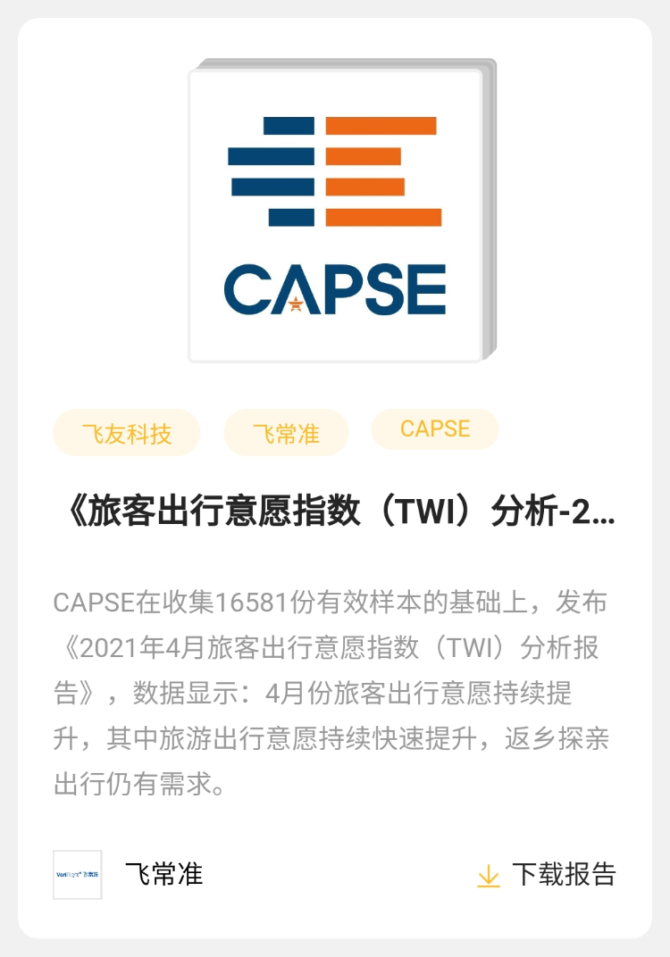 【报告】飞常准 | 《旅客出行意愿指数(TWI)分析-202104》