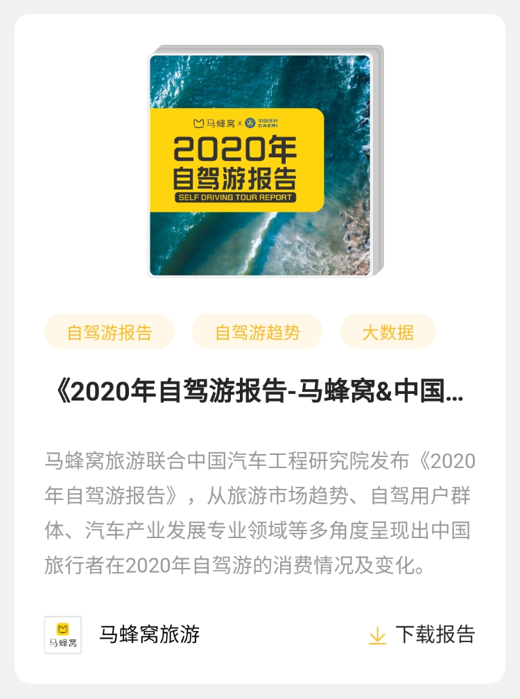 【报告】马蜂窝 | 《2020年自驾游报告-马蜂窝&中国汽研》