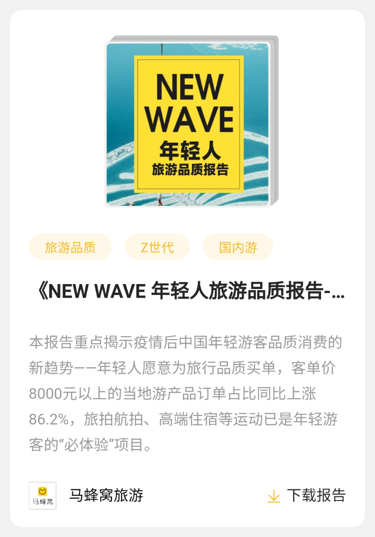 【报告】马蜂窝 | 《NEW WAVE 年轻人旅游品质报告-马蜂窝》