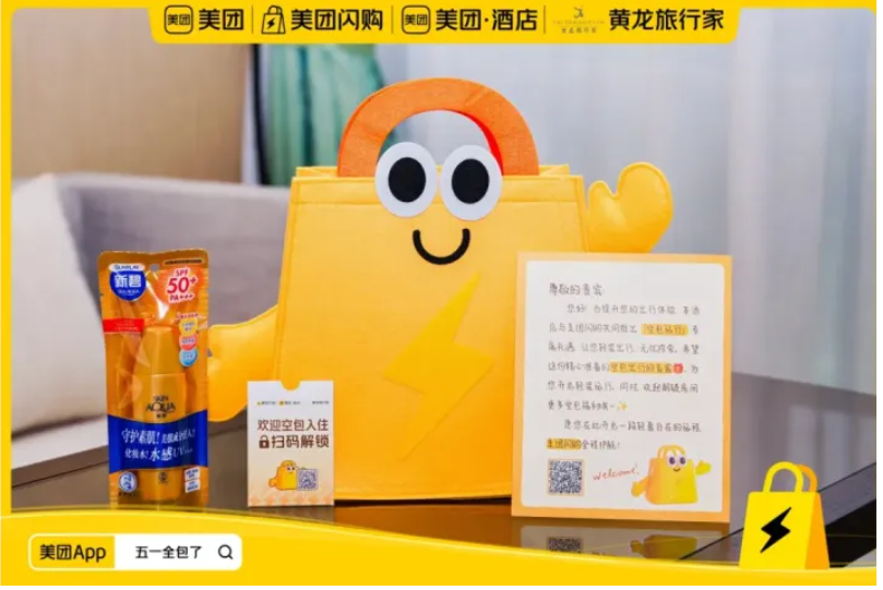 五一期间,黄龙酒店管理集团以及曼秀雷敦、帮宝适、RIO等7大品牌与美团,联手打造了1000套“空包旅行主题房"的创新体验,推动黄龙酒管消费总GMV同比提升超10%,客流量增加了16.86%,再次验证“住宿+”场景消费的商业价值。