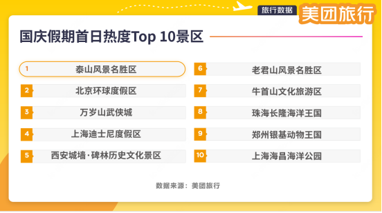 ▲美团旅行发布国庆假期首日热度Top 10景区