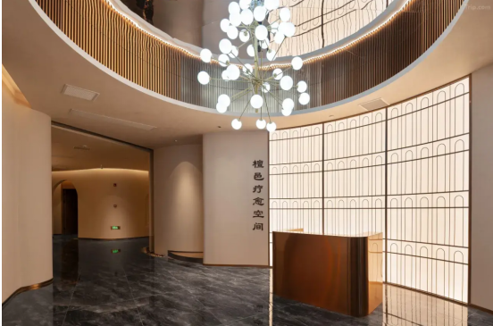 不同于传统酒店,檀邑尤为注重宾客五感体验,致力于将度假转化为疗愈身心之旅。二层的檀邑疗愈空间,便是檀邑的核心理念体现。疗愈空间不仅提供玛瑙石温疗、足疗等服务,更有茶室、抄经室、禅室供人静修。