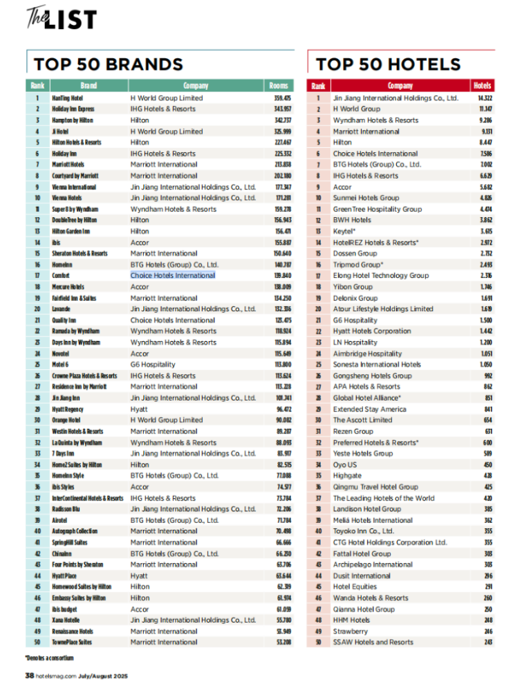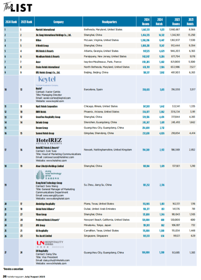 今年7月,在另一权威榜单《HOTELS》2024 年度排名中,中国力量的表现同样亮眼: