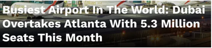 本月最新数据显示,DXB以总座位数530万超越亚特兰大(ATL),成为全球最繁忙机场。