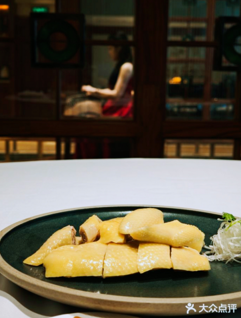 ▲游客在丽轩中餐厅(广州富力丽思卡尔顿酒店),品尝珍味白切荔枝鸡(图源:大众点评用户上传)