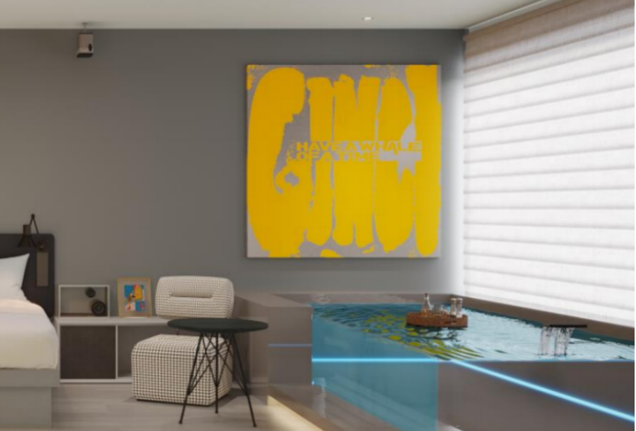 除此之外,尚客优7酒店还首次推出了专为年轻人设计的“室内无边泳池房”。在28㎡面积内,首次设计2x4米室内无边泳池,可泡澡放松,松弛感拉满,并搭配150英寸高清巨幕与专业音响,打造沉浸式影音体验,单房造价也在8万元/间,预估售价200-300元/间夜。