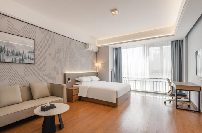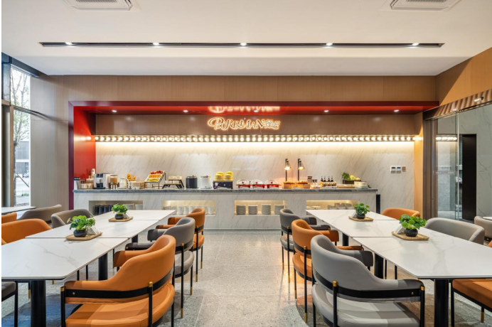 该店从大堂至客房,通过色彩、光影与艺术陈设的巧妙搭配,塑造出活泼热烈的风格,打破传统商务酒店的沉闷感。客房以温馨柔和的氛围营造、舒适高品质的睡眠系统,为客人提供静谧放松的休憩空间。落地大窗可在夜晚一赏城市夜景,同时超38平米的宽敞空间也给予了住客更多体验的可能性。酒店早餐厅每日新鲜提供多种营养餐点。酒店还配备免费停车场、商务大堂、雅致餐厅及全自动洗衣房等设施,覆盖商旅住客的核心需求,兼具实用性与格调感。