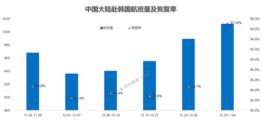 2026年第1周 ,周航班量突破1000班次,已恢复至2019年的97.2%,位居所有国际航线首位。
