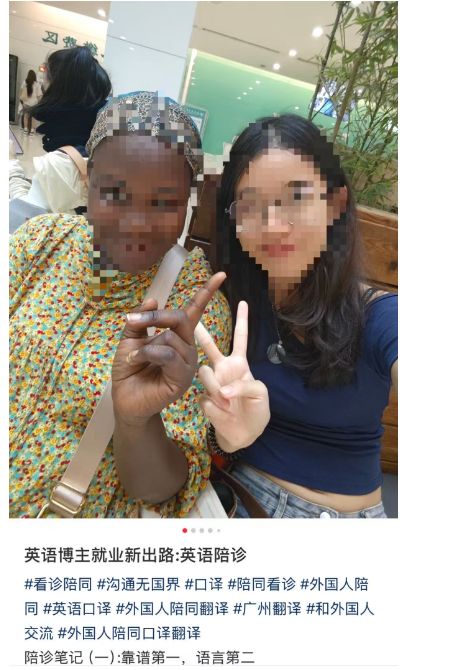 先聊聊陪诊小R,她是广州一名大三学生,学新闻但酷爱英语,会利用课余时间兼职做英语翻译。