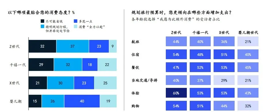 其报告数据显示,Z世代和千禧一代愿意将25-26%的收入用于旅行,超过70%的年轻人都表示自己比以往更渴望出发。