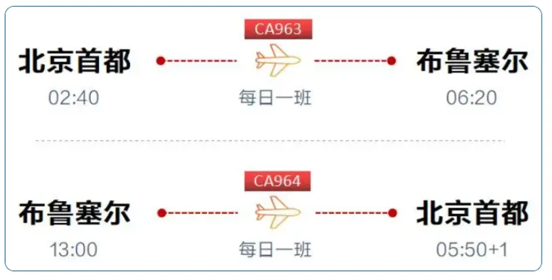 • 3月24日起,开通北京首都—布鲁塞尔航线,每日直飞;