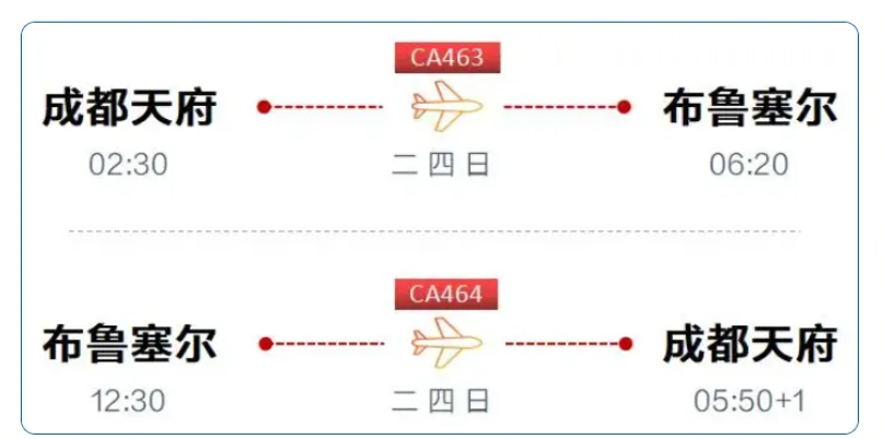 • 3月26日起,开通成都天府—布鲁塞尔航线,每周三班。