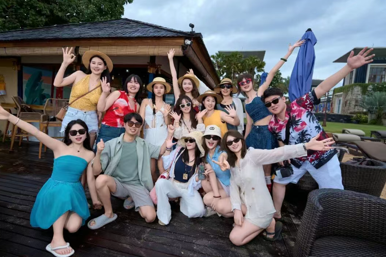 这套流程从出发前就开始了。从行前强制破冰、第一晚的社交晚餐,到行中的小组拍照互动和主题派对。在旅行中,传统的领队变成了“种草官”,他们不仅要考取导游证,还要接受标准化的摄影和情绪带教培训。