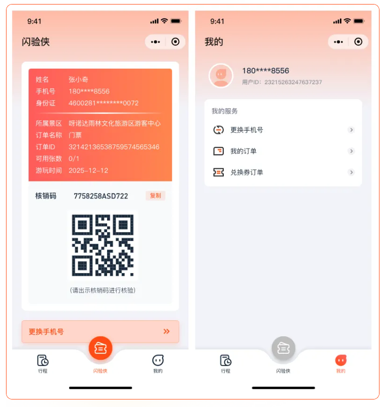 天时同城自主研发的“闪验侠”小程序,整合了微信、视频号、美团等多渠道票务,为游客提供统一的电子订单查找入口。