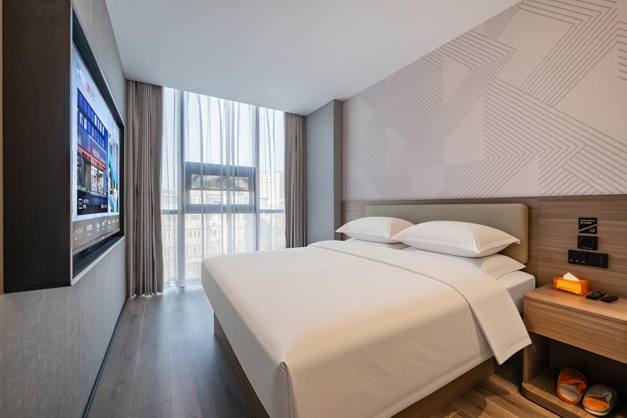 酒店设计全系房型采用中档商旅风格,在都市核心勾勒出兼具舒适雅致与艺术人文的休憩空间。全屋智能客控系统让宾客一声指令即可调控灯光、空调与窗帘,千兆高速网络与24小时热水随时在线,让商务与休闲无缝切换。酒店还设有自助早餐厅与配备烘干机的自助洗衣房,为旅途提供周到便捷的生活配套。在酒店的户外空中花园一隅,还可以静享午后时光,夜览城市星光,在城市中心遇见一种旅居的美好。