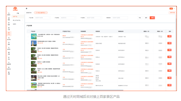 天时同城通过系统对接能力,打通了「惠游江西」平台与上百家合作景区的票务系统。瑞金共和国摇篮、婺源江湾、抚州大觉山、安义古村、南昌双子塔303观光厅、《井冈山》实景演出、宜春温汤工疗温泉、靖安国际滑雪场等景区产品,均可通过天时同城系统实现产品上架、订单推送、核销同步的全流程自动化。运营团队无需人工干预,即可实现多景区产品的统一管理与实时更新。