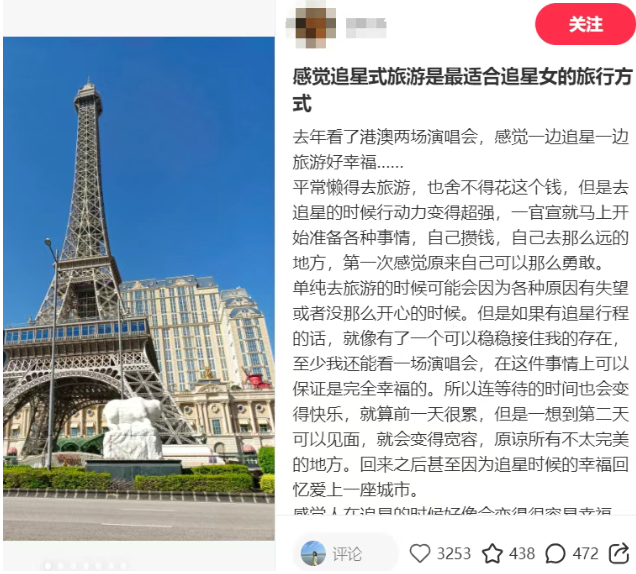 最近刷小红书,一个关于“追星式旅游”的帖子让我印象很深。