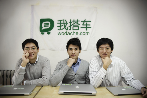 “我搭车”创始人:左起为胡怀之、许伟捷、王一禾